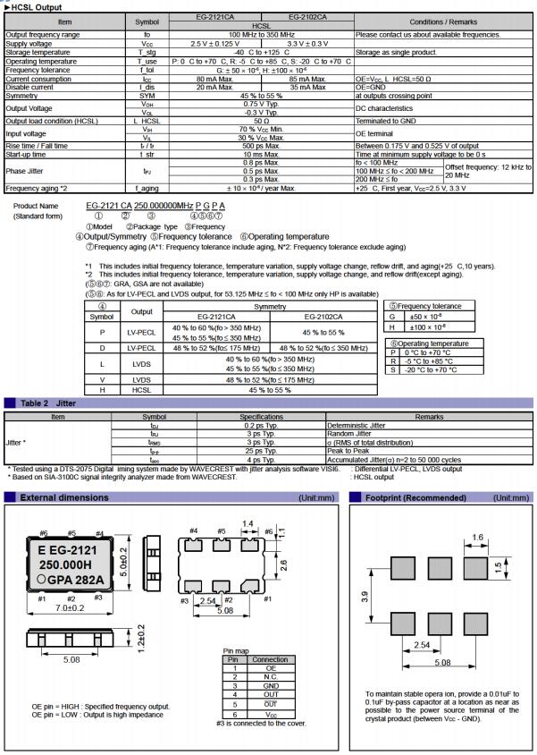 | Q3805CA10002000 | EG-2121CA | 100.000000 MHz | 7.00 x 5.00 x 1.20 mm | LVDS | 2.375 to 2.625 V | -5 to 85 °C |