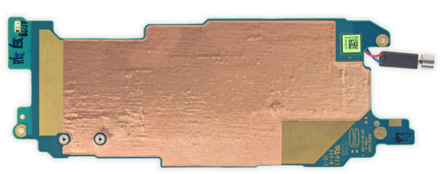 緊接著來(lái)看一下主板正面芯片布局詳解,現(xiàn)在看到的是主板背面,啥也沒(méi)有,只貼著一層銅箔.總的來(lái)說(shuō),HTC對(duì)于驍龍810的處理很簡(jiǎn)單,沒(méi)有加強(qiáng)散熱手段,也沒(méi)有更高級(jí)的電源管理,難怪要比nubia Z9 Max熱得多!主板去掉了,才能取下電池.HTC還真是固執(zhí)啊.