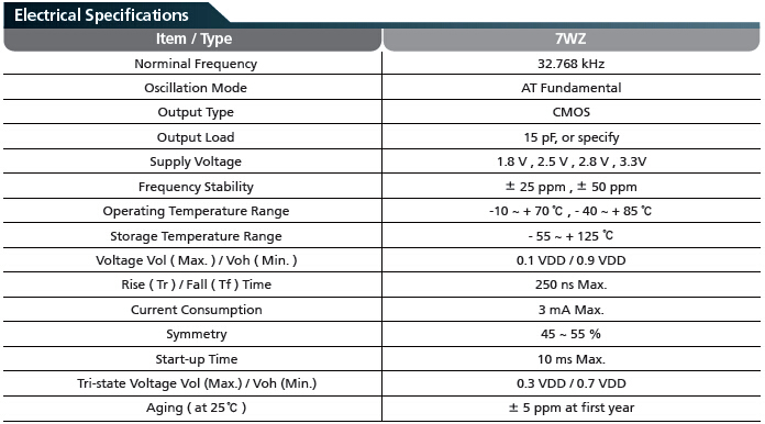 7WZ7050mm貼片晶振,32.768K有源晶振,TXC石英晶體振蕩器,滿足32.768khz RTC時鐘信號嚴(yán)格的公差要求,易于使用的SMD縫密封陶瓷外殼,4墊設(shè)計達(dá)到良好的焊接PCB上接觸,在晶體的諧振器使用良好的溫度性能,三態(tài)函數(shù)用于節(jié)電,通過無鉛認(rèn)證/ Pb免費(fèi).