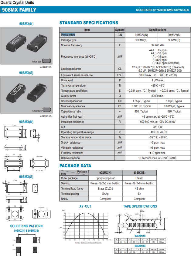 SMI晶體,千赫茲石英晶體,90SMX(N)諧振器.該類產(chǎn)品特性如耐熱性,耐沖擊性,在辦公自動化,家電相關(guān)電器領(lǐng)域及Bluetooth,Wireless LAN等短距離無線通信領(lǐng)域可發(fā)揮優(yōu)良的電氣特性,滿足無鉛焊接的回流溫度曲線要求.