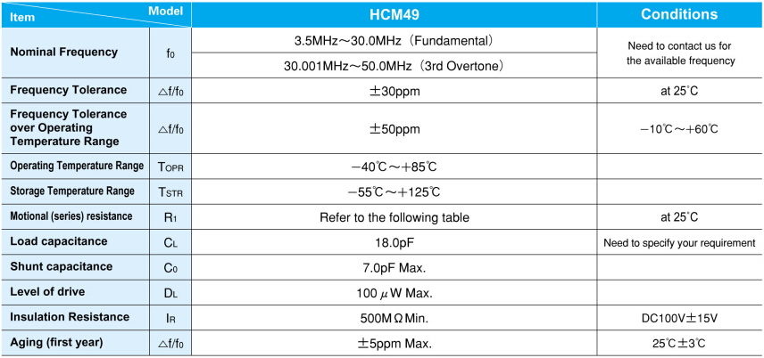 日本西鐵城晶振,HCM49進口晶振,SMD石英晶體,高密度SMD類型3.2*2.5*0.55mm,頻率范圍3.5MHZ~50.0MHZ,可靠的陶瓷外殼和優秀的環境特征,適合各種應用程序通訊設備、AV設備等設備,焊接方面支持表面貼裝,外觀采用金屬封裝,具有充分的密封性能,晶振本身能確保其高可靠性,采用編帶包裝,可對應產品應用到自動貼片機告訴安裝,滿足無鉛焊接的高溫回流溫度曲線要求.