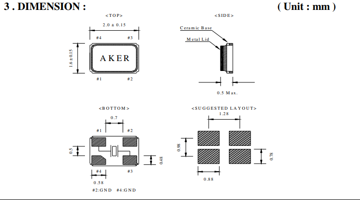 封裝 | 金屬面貼片 | 尺寸 | 2.0*1.6*0.5mm |