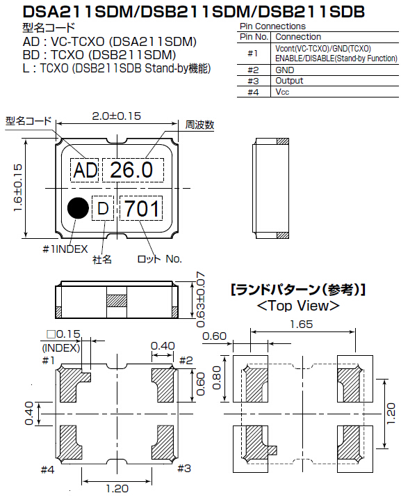 DSA211SDM(VC-TCXO)石英晶振,DSB211SDM(TCXO)有源晶振,“1XXC52000JBA”大真空株式會社,SMD封裝2.0*1.6*0.63mm,頻率范圍12.288MHz~52.0MHz,低電壓1.7V~3.5V,頻率溫度穩定值±1.5×10-6,VC-TCXO產品內部晶片焊接模式采用了,高精密點膠技術:晶片膠點的位置、大小:位置準確度以及膠點大小一致性,通過圖像識別及高精密度數字定位系統的運用、使晶片的點膠的精度在±0.02mm之內.