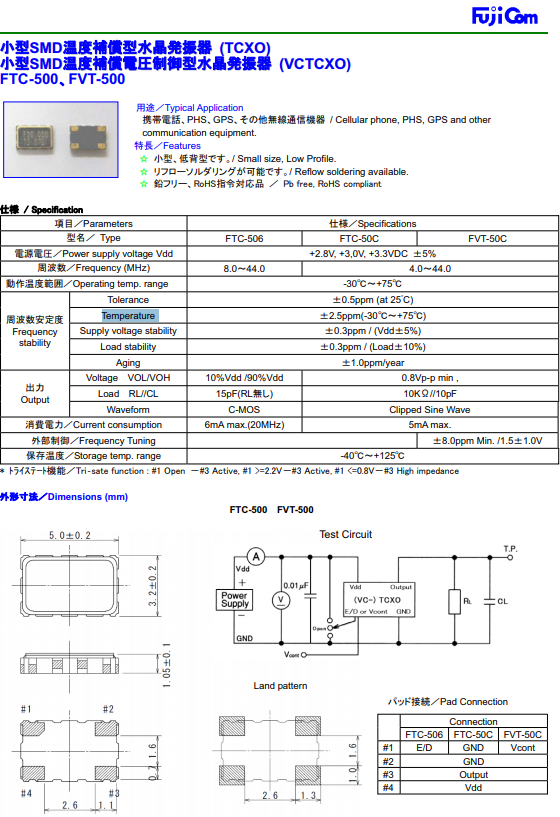 富士晶振,TCXO振蕩器,FTC-506石英晶振.溫補晶振(TCXO)產(chǎn)品本身具有溫度補償作用,高低溫度穩(wěn)定性:頻率精度高0.5PPM~2.0PPM,常用頻率:26M,33.6M,38.4M,40M.因產(chǎn)品性能穩(wěn)定,精度高等優(yōu)勢,被廣泛應用到一些比較品質(zhì)的數(shù)碼通訊產(chǎn)品領域,導航定位系統(tǒng),智能手機,WiMAX和無線通信等產(chǎn)品,符合RoHS/無鉛.