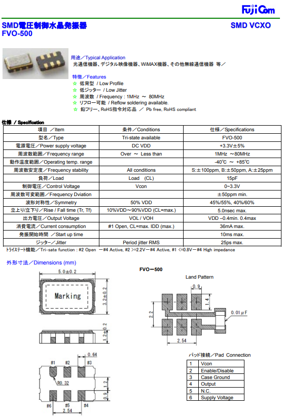 富士晶體,壓控晶振,FVO-500進口晶振.有源晶振,是只晶體本身起振需要外部電壓供應(yīng),起振后可直接驅(qū)動CMOS集成電路,富士石英晶體本身已實現(xiàn)與薄型IC(TSSOP封裝,TVSOP封裝)同樣的1mm厚度,斷開時的消費電流是15µA以下,編帶包裝方式可對應(yīng)自動搭載及IR回流焊盤(無鉛對應(yīng))產(chǎn)品有幾種電壓供選1.8V,2.5V,3V3.3V,5V,以應(yīng)對不同IC產(chǎn)品需要.
