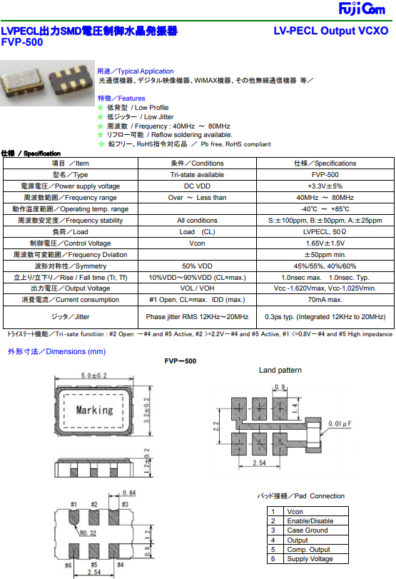 富士晶振,壓控振蕩器,FVP-500石英晶振.貼片石英晶體,體積小,焊接可采用自動貼片系統,產品本身小型,表面貼片晶振,特別適用于有小型化要求的電子數碼產品市場領域,因產品小型,薄型優勢,耐環境特性,包括耐高溫,耐沖擊性等,在移動通信領域得到了廣泛的應用,晶振產品本身可發揮優良的電氣特性,滿足無鉛焊接的高溫回流溫度曲線要求.