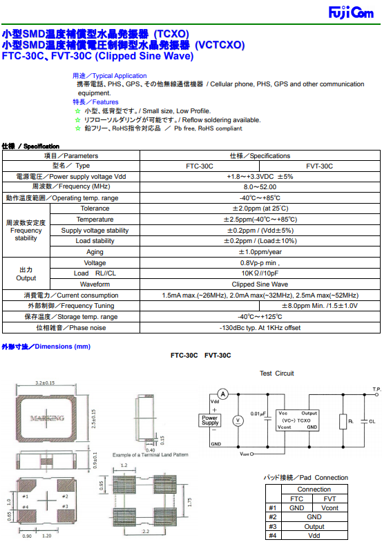 富士晶振,壓控溫補晶振,FVT-30C水晶振蕩子.3225mm體積非常小的貼片晶振器件,是民用小型無線數(shù)碼產(chǎn)品的俱佳選擇,小體積的晶振被廣泛應(yīng)用到,手機藍(lán)牙,衛(wèi)星定位系統(tǒng),無線通訊集,高精度和高頻率的穩(wěn)定性能,非常好的減少電磁干擾的影響,是民用無線數(shù)碼產(chǎn)品較好的選擇,符合RoHS/無鉛.