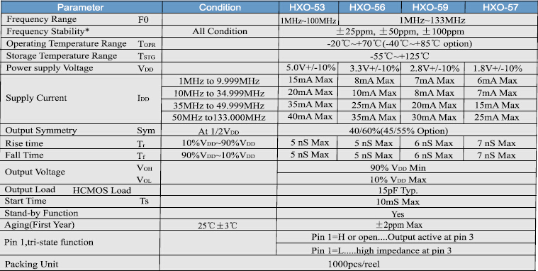 HXO-5,HXO-Q5石英晶體振蕩器,5032mm有源晶振,鴻星晶振供應商,HXO-5系列是一個超微型包時鐘振蕩器尺寸為5.0 * 3.2 * 1.3mm,工作電壓1.8V~5.0V可供選擇.三態(tài)啟用/禁用TTL / HCMOS兼容的磁帶和卷軸紅外回流,主要用于便攜式電腦和電信設備和設備.