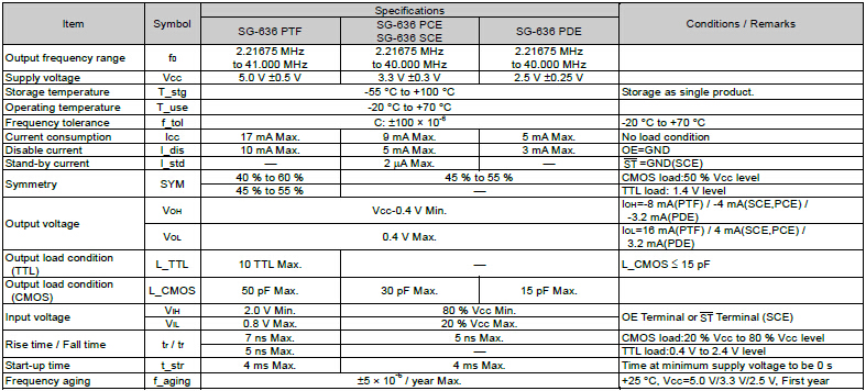 SG636PTF,PCE,SCE,PDE,PTW,STW,PHW,SHW,PCW,SCW,PTG,PHG,PCG,SCG振蕩器,“SG-636PTF 40.0000MC3:ROHS”,愛普生車載電子晶振,頻率范圍2.21675MHz~135.0MHz,電源電壓3.0V~5.0V,功能使能(OE),外部尺寸規格10.55.82.7mm,編...