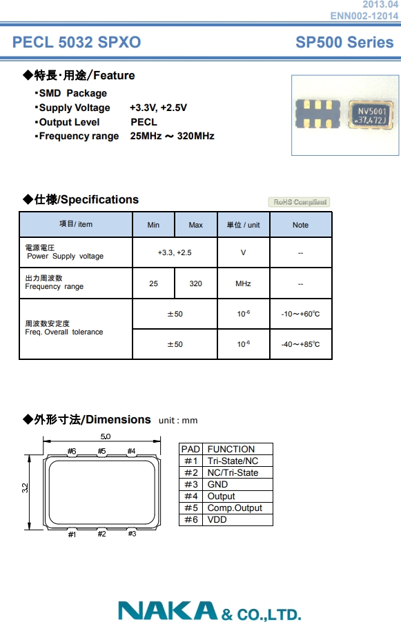 NAKA晶振,有源晶振,SP500振蕩子.有源石英晶振,外觀完全使用金屬材料封裝的,產(chǎn)品本身采用全自動(dòng)石英晶振檢測(cè)儀,以及跌落,漏氣等苛刻實(shí)驗(yàn).產(chǎn)品本身具有高穩(wěn)定性,高可靠性的石英晶體振蕩器,焊接方面支持表面貼裝,外觀采用金屬封裝,具有充分的密封性能.