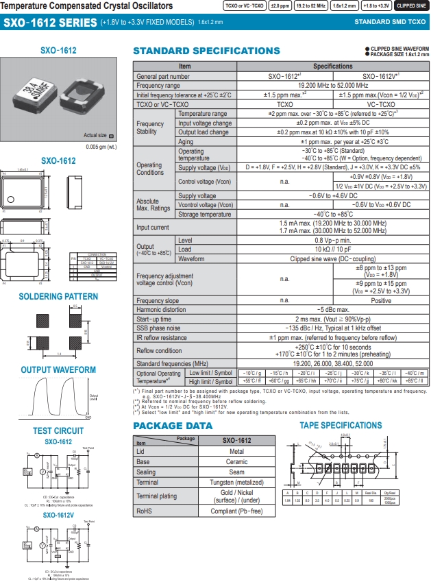 SMI晶振,壓控溫補(bǔ)晶振,SXO-1612V晶振.小型表面貼片型貼片晶振,較適合使用在汽車電子領(lǐng)域中,也是特別要求高可靠性的引擎控制用CPU的時(shí)鐘部分.低頻晶振可從19.2MHz起對(duì)應(yīng),小型,薄型具備強(qiáng)防焊裂性,石英晶振在惡劣嚴(yán)酷的環(huán)境條件下也能發(fā)揮穩(wěn)定的起振特性.