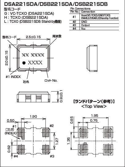 壓控溫補振蕩器,DSA221SDA石英晶振,無線設備晶振,“1XXA20000CAA”為對應低電源電壓的產品(DC+1.8V ± 0.1V to +2.9V ± 0.1V 對應IC可能) 高度:最高0.8 mm,體積:0.0022 cm3,重量:0.008 g,超小型,輕型.低消耗電流,表面貼片型產品.(可對應回流焊)無鉛產品.滿足無鉛焊接的高溫回流溫度曲線要求,帶有AFC(頻率控制)功能,Enable/Disable功能,產品本身可根據使用需要進行選擇.