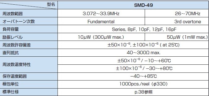 KDS水晶振子,SMD49貼片晶振,石英晶體諧振器,頻率范圍3.072MHz~70.0MHZ,可以支持從低溫到高溫的廣泛運(yùn)行溫度范圍,頻率穩(wěn)定度卓越,耐撞擊性、耐振性等高可靠性,支持自動(dòng)貼裝、回流焊,依據(jù)AEC-Q200,無鉛RoHS/ELV對應(yīng).
